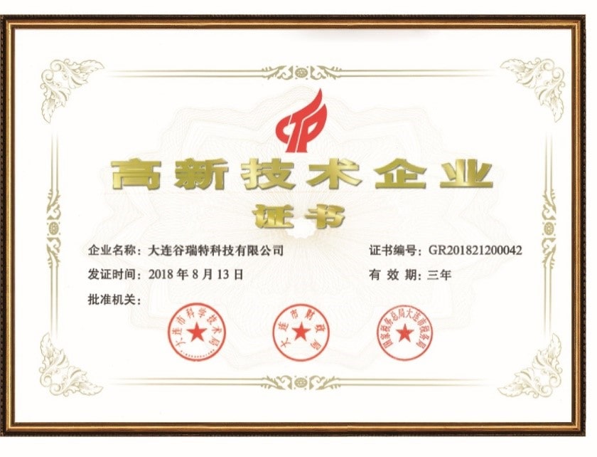 喜訊!喜訊!——根據(jù)國家《高新技術(shù)企業(yè)認定管理辦法》和《高新技術(shù)企業(yè)認定管理工作指引》的相關(guān)規(guī)定,“大連谷瑞特科技有限公司”被認定為國家級高新技術(shù)企業(yè)。近日,公司已收到由大連市科學(xué)技術(shù)局、大連市財政局、國家稅務(wù)總局大連市稅務(wù)局聯(lián)合頒發(fā)的“國家高新技術(shù)企業(yè)”認定證書,正式邁入國家高新技術(shù)企業(yè)行列。